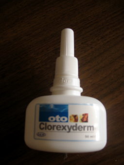 Ten pas vet klinikoi jo tegausi, iš "clorexyderm " firmos ten...