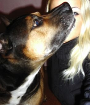 įsimylėjęs šuo švelniai kandžioja savo šeimininkei nosytę...