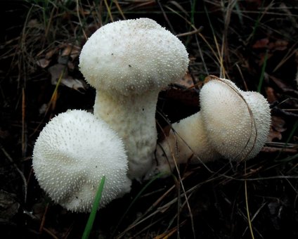 1. Karpotasis pumpotaukšlis (Lycoperdon perlatum).