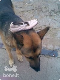 Tada aš ieškojau Baksui dar kažko,ir palėpėje netyčiom radau savo seną seną batą,jau visą apsilupusį,bet Baksui pažaisti kaip tik!