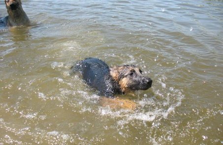 Ir didingas šuo plaukti moka.