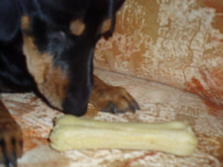 Štai Memelis valgo savo kaulą: