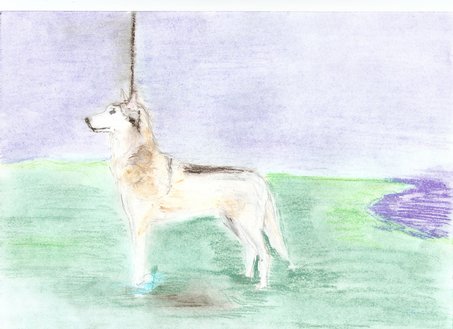 Štai aš nupiešiau keturių veislių šunis minkštomis pastelėmis ...