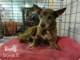Šis mažaūgis ne pirmos jaunystės (apie 10 m.) šunelis rastas Savanorių pr. prie "Helios" pastato. Jis tiesiog sėdėjo pire durų.