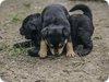 su rudu, ir trys patinėliai- du juodi ir vienas baltas). Šuniukų mama nedidukė,