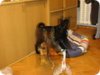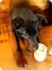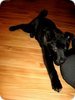 Mergytė verta meilės iš pirmo žvilgsnio (Būtent taip nutiko mano vyrui)! Toookia juoda, snukutis lapės, o akys gudraus ir išmintingo vilko! Taip, būtent – šunytė beprotiškai protinga. Aišku, jai tik 4 mėn., norisi visko paragaut, viską apuostyt, bet...truputį drausmės ir jau žino, kad batai – tai negeras dalykas. Šįryt stebint jos išdaigas iš lovos, užtekdavo žvilgsnio ir griežtesnio žodžio – kaip raketa viską mesdavo ir dumdavo į savo vietą. Dar parodė savo moterišką gudrumą – kai mūsų šuo nenori su ja žaist, ji atima jo mėgstamiausią kamuoliuką, PADEDA jį už savęs ir niekaip jo nepraleidžia :)) komiškai tai atrodė. Taigi ji turi didelį „proto potencialą“ :) Manau, labai lengvai pasiduos dresūrai. Visgi geriausia joje tas, kad ji beprotiškai žavi ir miela..jos juodumas toks elegantiškas ir moteriškas! Be to, toks jausmas, kad ji tiesiog dievina žmogų ir buvimą su juo! Labai mėgsta prisiglausti ar bent jau padėti letenėlę ant kelio. Yra visiškai nepiktybinė, sulojo vieną kartą ir tai tik todėl, kad šuo su ja žaist nenorėjo. Savo reikalus atlieka ant laikraštuko, nors jau kartais prašosi į lauką. Realiai, jai reikia ritmo – kai reguliariai yra maitinama ir vedama į lauką, namie nieko nedaro. Aaaa, dar jos pliusas, kad ji puiki sportininkė! Nors tokia jauna, supranta, kad reikia bėgti šalia, nesidrasko į šonus, necypia, nebando sustot ir t.t. Aišku, tik jos kojytės dar tokios guminės, tai tiesiog komiškai bėga :)