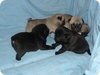 juodi ir trys smėliniai šuniukai.