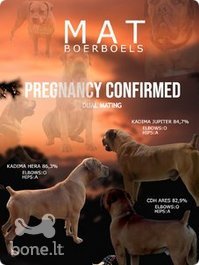Text: Su didžiule širdimi pranešame apie Pietų Afrikos Mastifo - Boerboel šuniukų vados, kilusių iš čempionų linijos! Šie nuostabūs šunys žinomi dėl savo ištikimybės, intelekto ir išskirtinių apsauginių savybių.