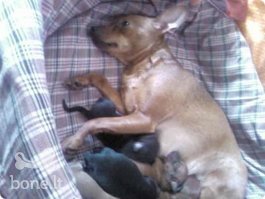 Greitai 6 nykštukinių pinčerių veislės banditėliai pradės ieškoti naujų namų. Jau galima teirautis. Kaunas, tel. 867501610.Pirmoje foto mama su vaikučiais, antroje - tėtis.
