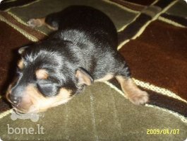 Parduodamas toterjerų patinėlis, vienintelis vadoje.Sveikutis, juodas su gražiu įrudžiu. Nuotraukose su mamyte, tėtis žymiai mažesnis. Berniukas gimė 2009 04 04