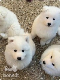 Samojedų šuniukai pasiruošę keliauti, kad surastų jiems amžinai mylinčius namus. Visi šuniukai bus su mikroschema ir turime mergaičių ir berniukų, tad jei kam įdomu.