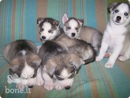 Parduodami 6 savaičių haskiukai (Gimę 2010-08-10). 2 patinėliai ir 3 patelės.Pirmi skiepai bus po dviejų savaičių, galite nusipirkti ir dabar be skiepu, mokant mažiau.