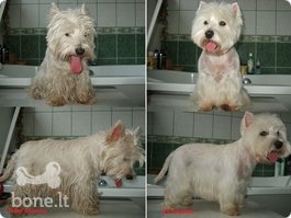 Maudau, kerpu, triminguoju, iššukuoju sąvėlas, išvalau ausis bei pašalinu plaukelius, kerpu nagučius, taip pat iššukuoju poplaukį.