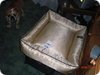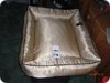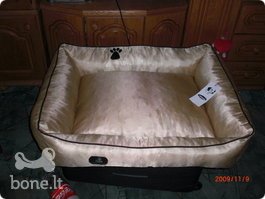 Parduodu gražų guolį šuniukui, visiškai naujas,didelis guolis,auksinės spalvos.Guolio išmatavimai : 95x75 cm.Kaina: 90lt.