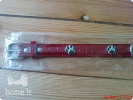Naujas antkaklis suaugusiam suniukui, supakuotas is USA. Raudonos spalvos, odinis. 49x2cm