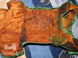 Parduodu du šilkinukus šuniukams. Galima naudoti susukant šunį į papilotes, nenorint, kad suveltų drabužis(megztinis, kombinenzonas ar kt.), nenorint, kad lauke prisikabintų prie šuniko lapų ar kt. Nešiota jokšyro terjerės žaliois juostelemis ne labai ilgai nes išaugo greit, o geltonois gal pora kartų buvo užvilkta. Tiktų šuniukui, kurio keteros ilgis 24-26 centimetrai, apie 2-2.5kg. Žaliomis juostelemis šilkinuke nėra 3 užsegimų, bet tas netrukdo šuniukui, užsisega visos kitos sagos gerai ir šone prie užsegimo ažas prairimas bet tai galima susiūti. Kaina nurodyta už abu, o jei atskirai: žaliomis juostelėmis 20lt, o geltonomis 30lt.Vilniuje, Šeškinėje galima būtų pasimatuoti, o kitus miestus siunčiu.